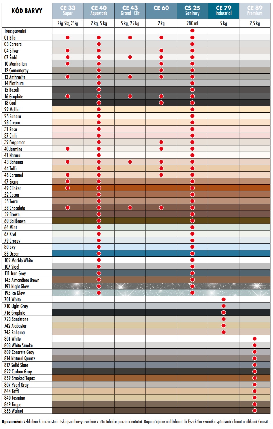 Hmota Ceresit CE 89 je určena pro chemicky a trvale odolné lepení a spárování keramických obkladů, dlažby a mozaiky se spárou 1–15mm, jako jsou: obytné, veřejné a průmyslové prostory, obklady v koupelnách, sprchách, bazénech, nádržích s termální nebo brakickou (poloslanou) vodou, saunách a parních lázních, dále pro podlahové vytápění, kuchyňské desky, terasy a balkony. Produkt lze použít pro spárování keramických obkladů v prostředích vystavených přímému kontaktu s potravinami, jako jsou: pracovní stoly pro maso, mléčné výrobky nebo mouky, kuchyňské stoly v restauracích, pekárnách a cukrárnách. Hmota je vhodná pro lepení a spárování keramických krytin v oblastech vystavených agresivním látkám (viz tabulka chemické odolnosti), jako jsou mlékárny, jatka, restaurace, potravinářské výrobny obecně. Vhodné pro lepení a spárování mozaiky v bazénech na vodotěsných membránách jako CL 50, CL 69.